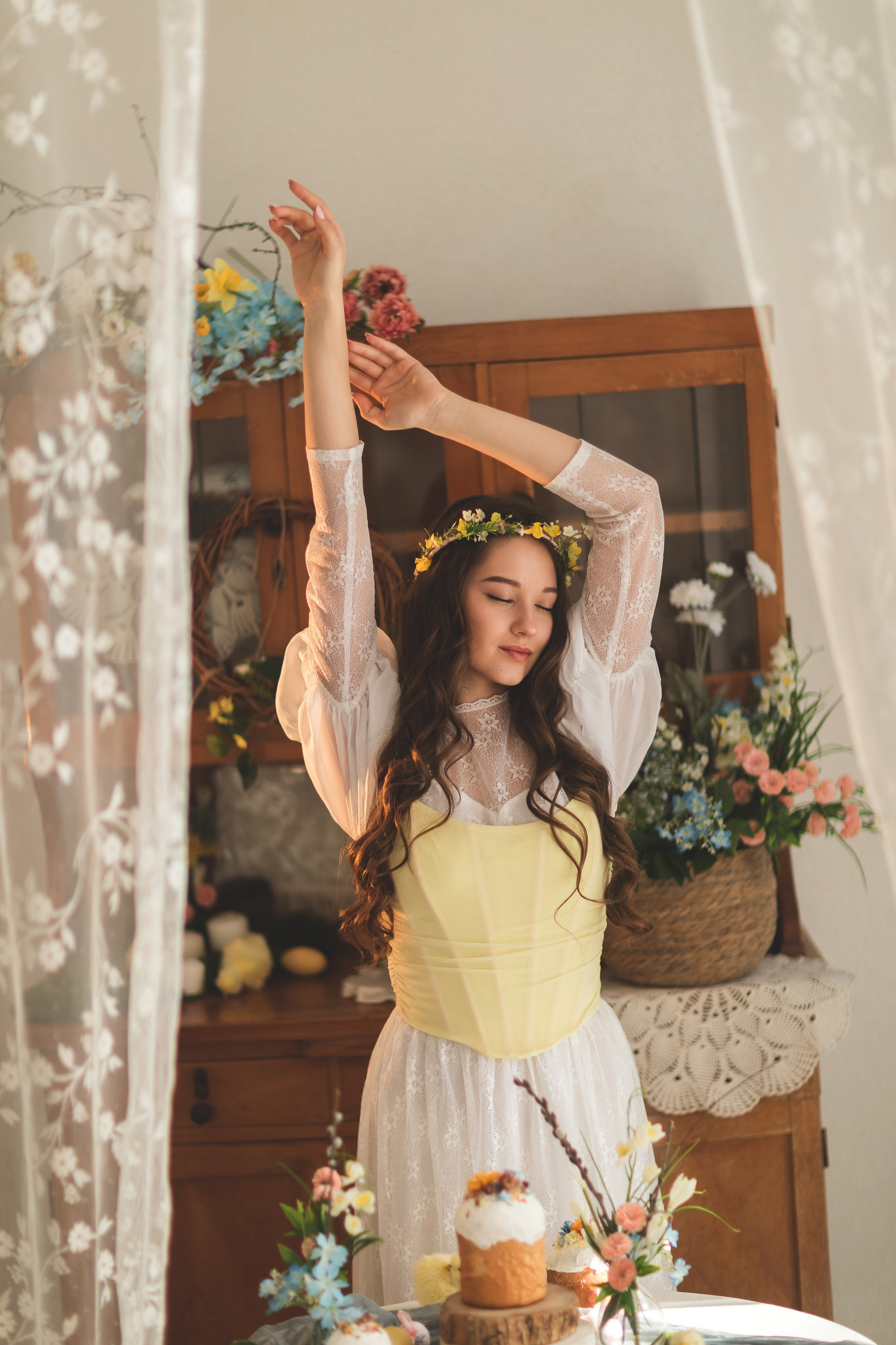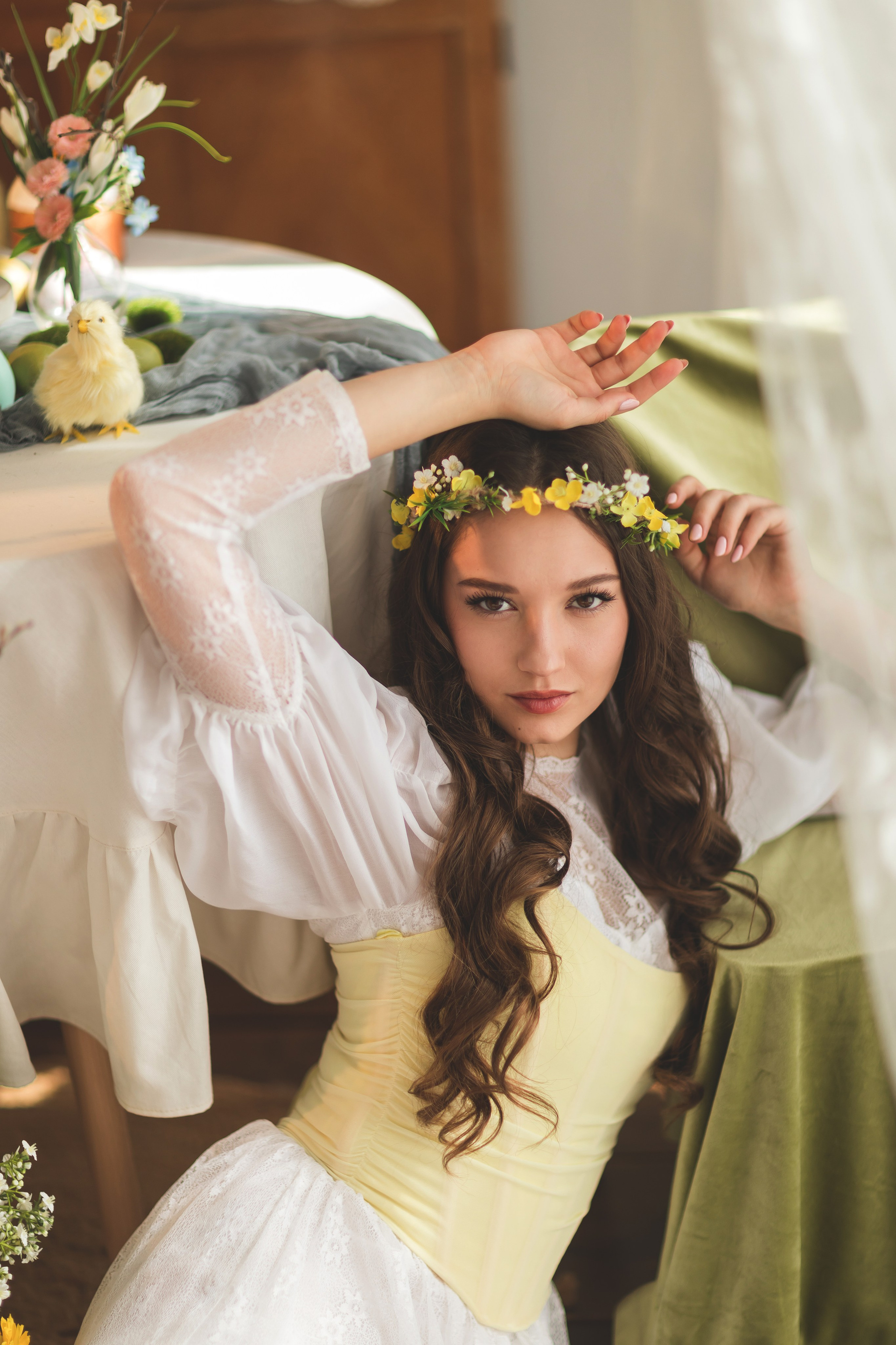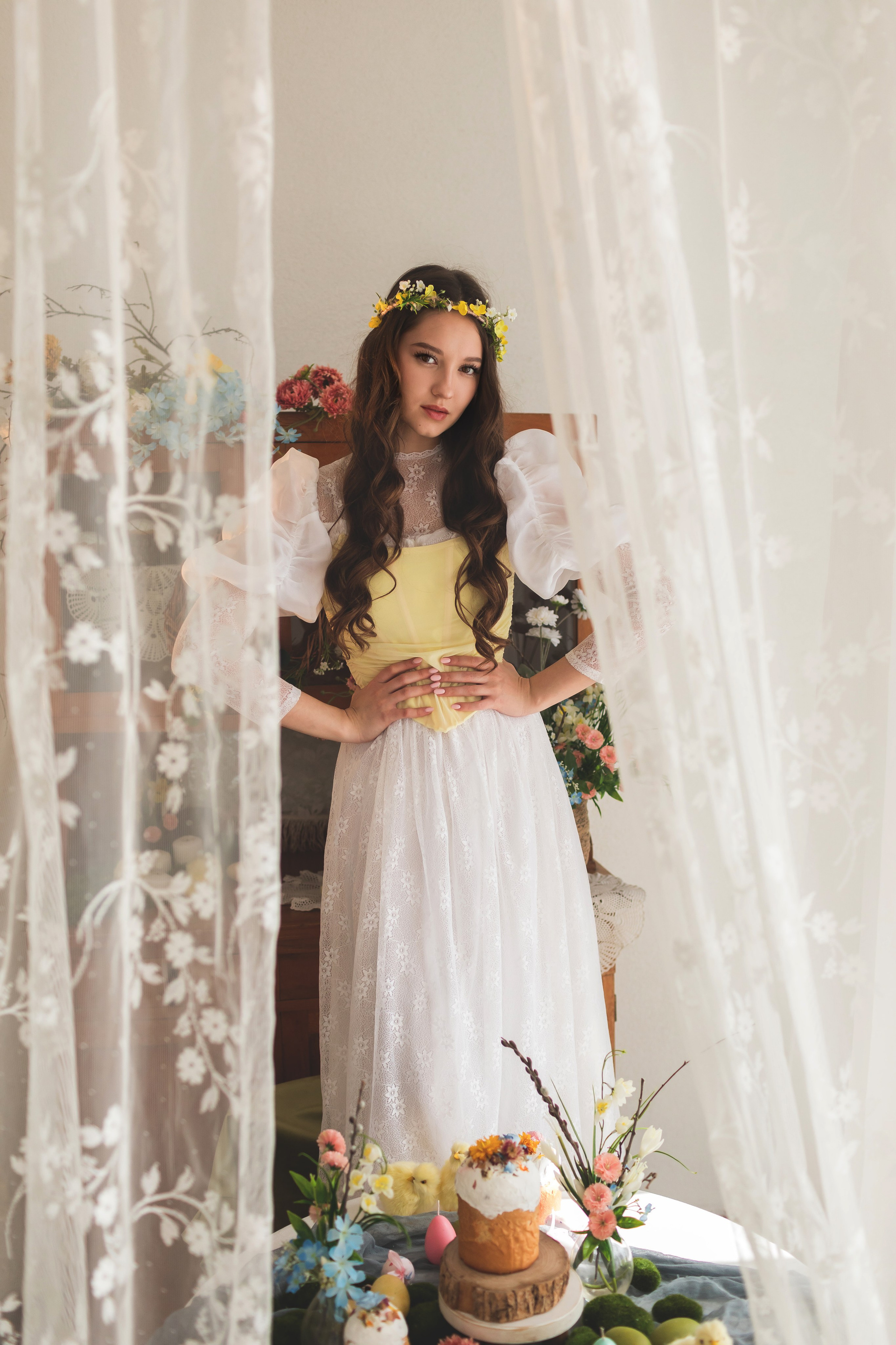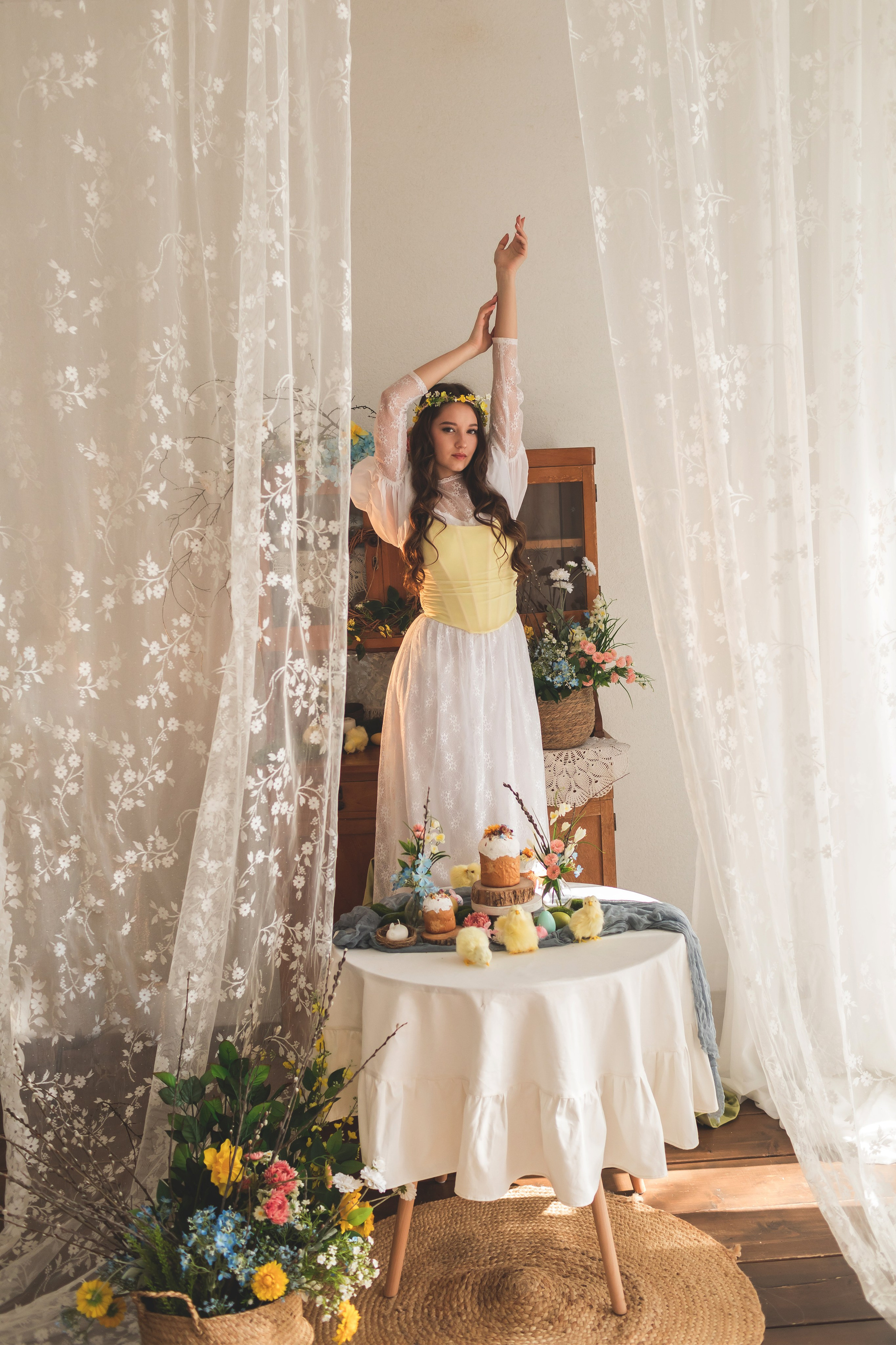 Скоро в Краснодар придет настоящая цветущая весна, а мы пока пофотографируемся в весенней студии Образ сочинила внезапно: увидела локацию, вспомнила про платье и заказала корсет, и тут была уверена, что Ане этот образ подойдет больше всех🥰
