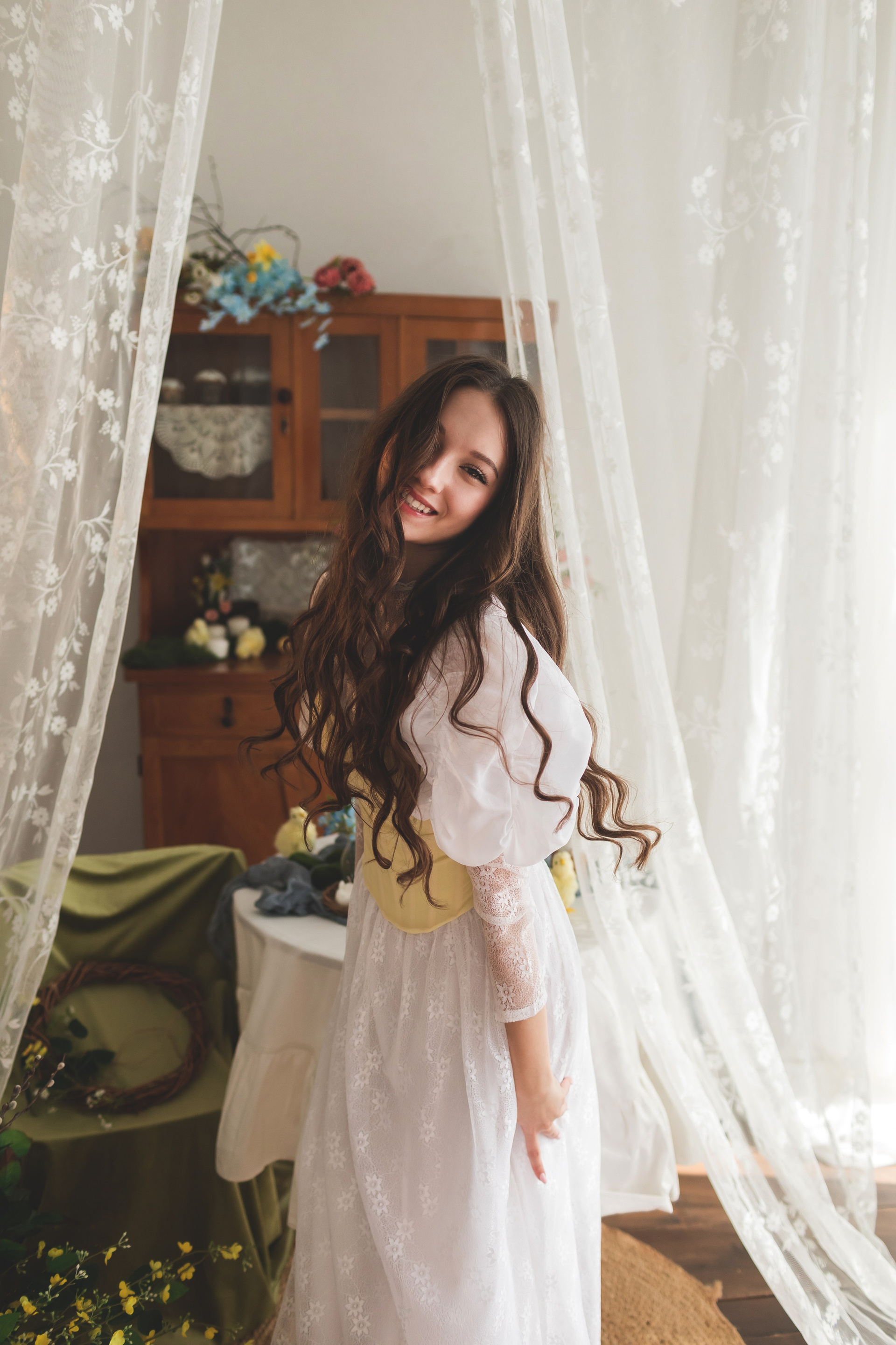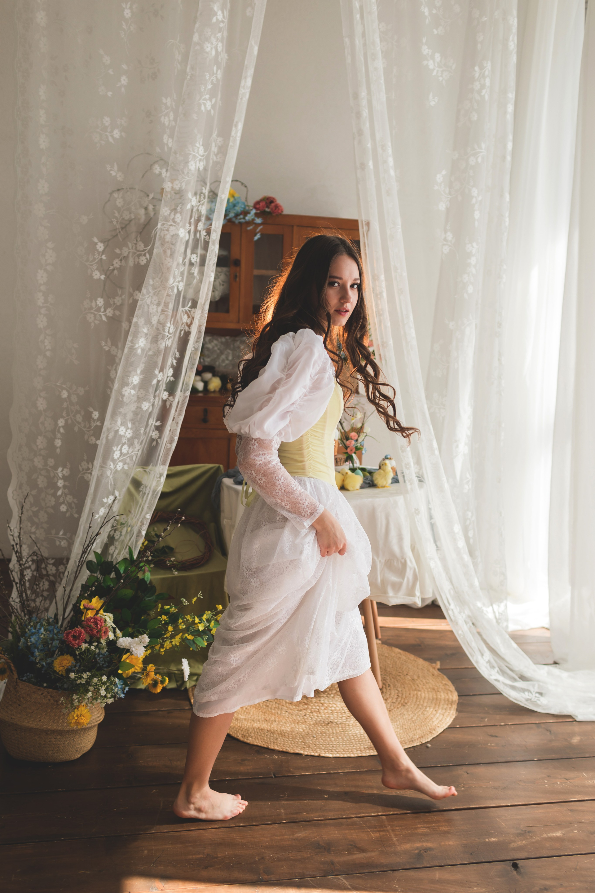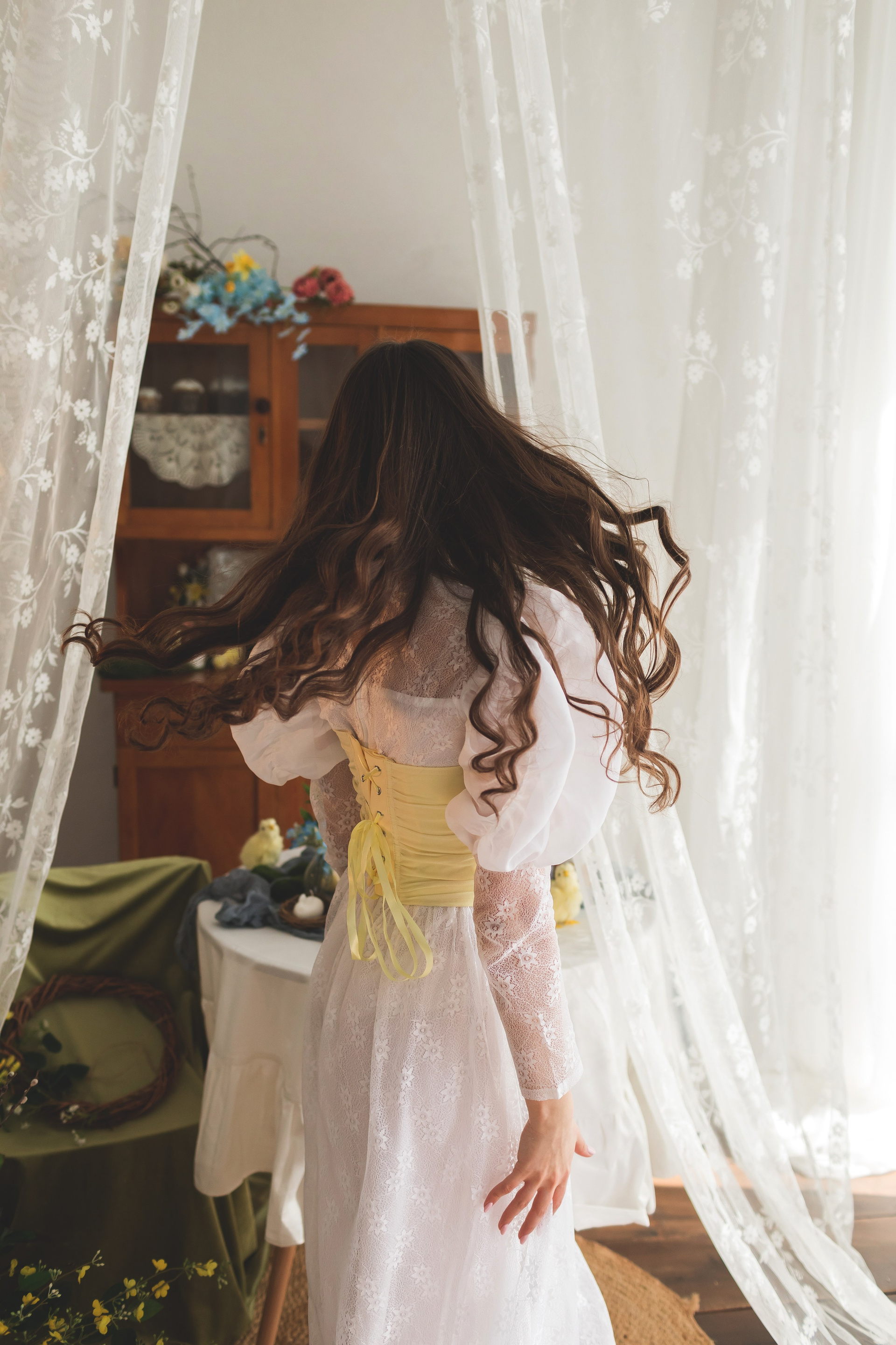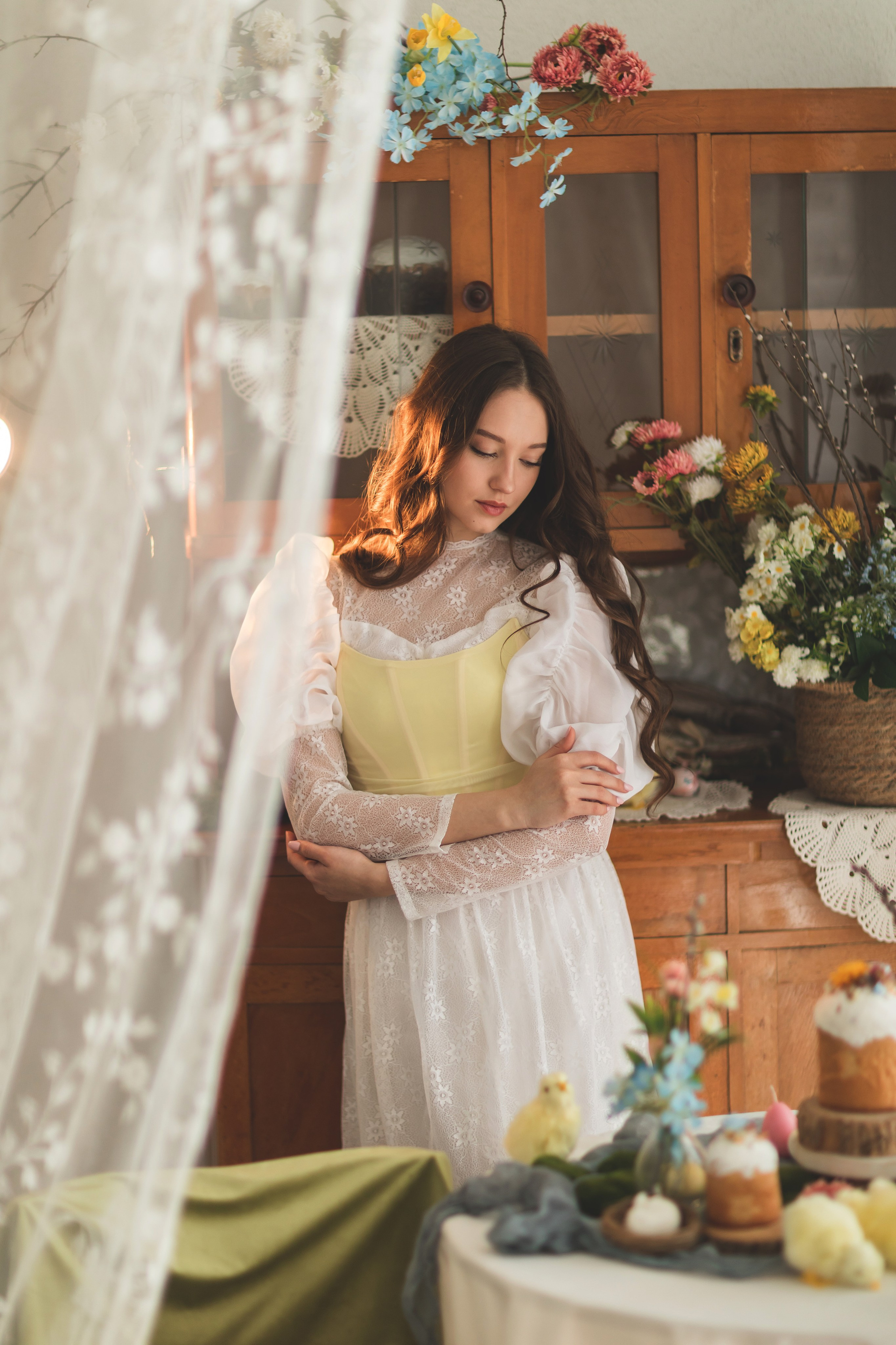 Скоро в Краснодар придет настоящая цветущая весна, а мы пока пофотографируемся в весенней студии Образ сочинила внезапно: увидела локацию, вспомнила про платье и заказала корсет, и тут была уверена, что Ане этот образ подойдет больше всех🥰
